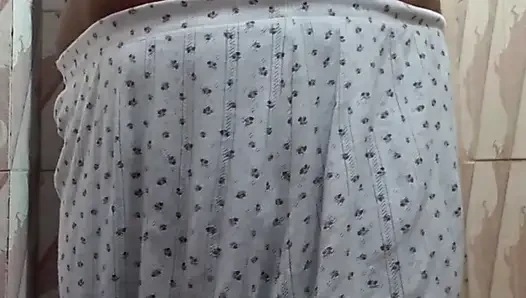 Hintli orta yaşlı seksi kadın tek başına duşta mastürbasyon yapıyor